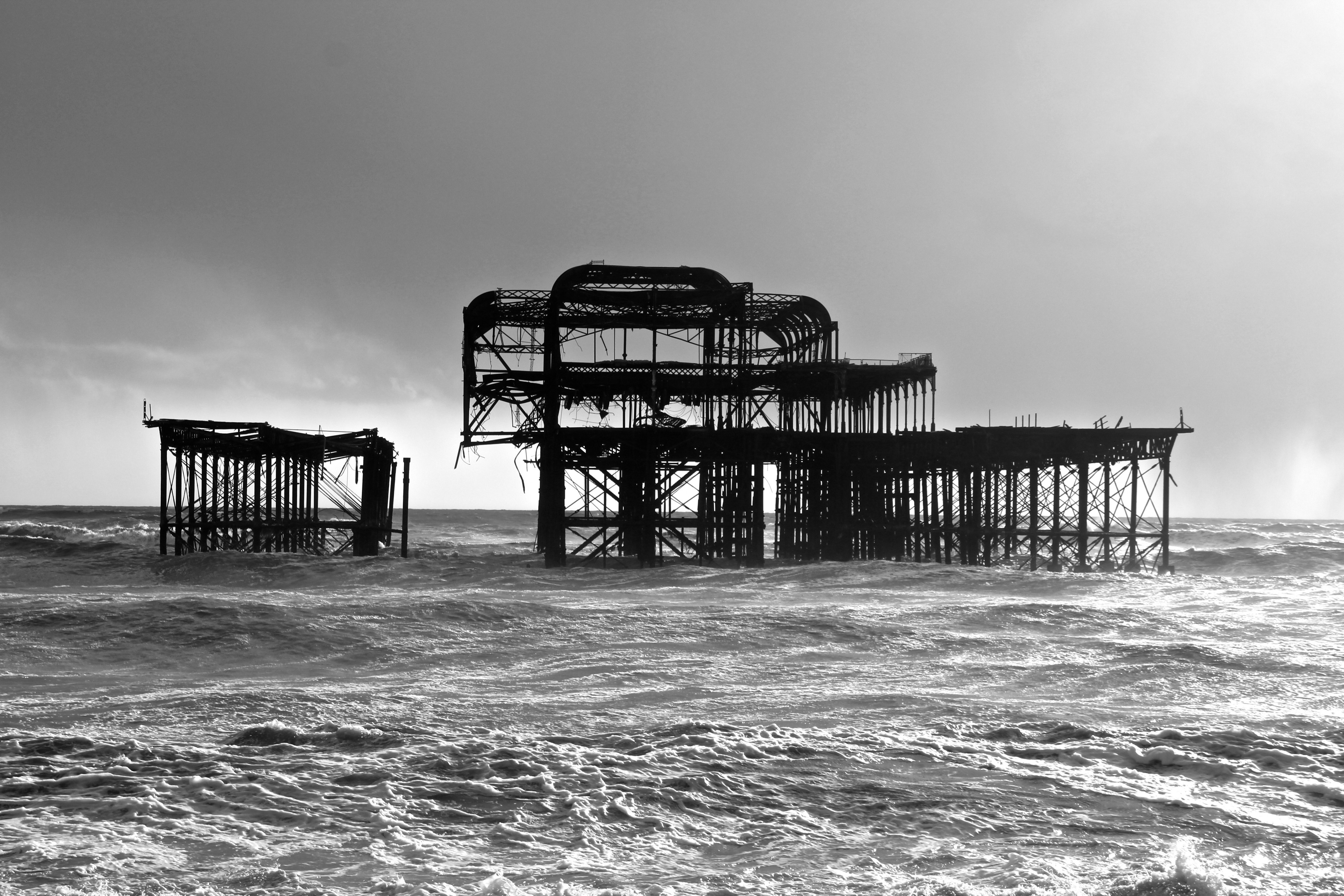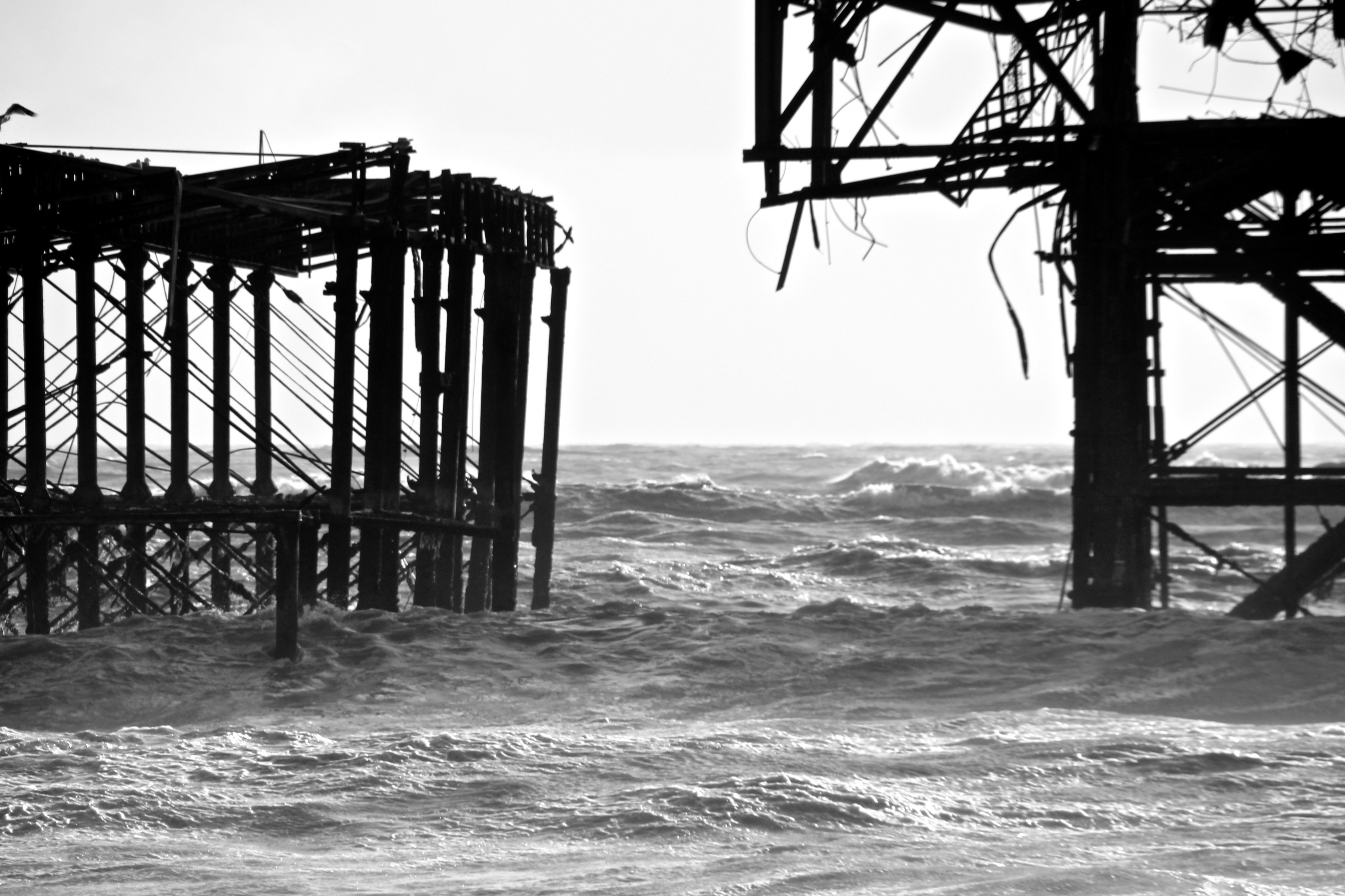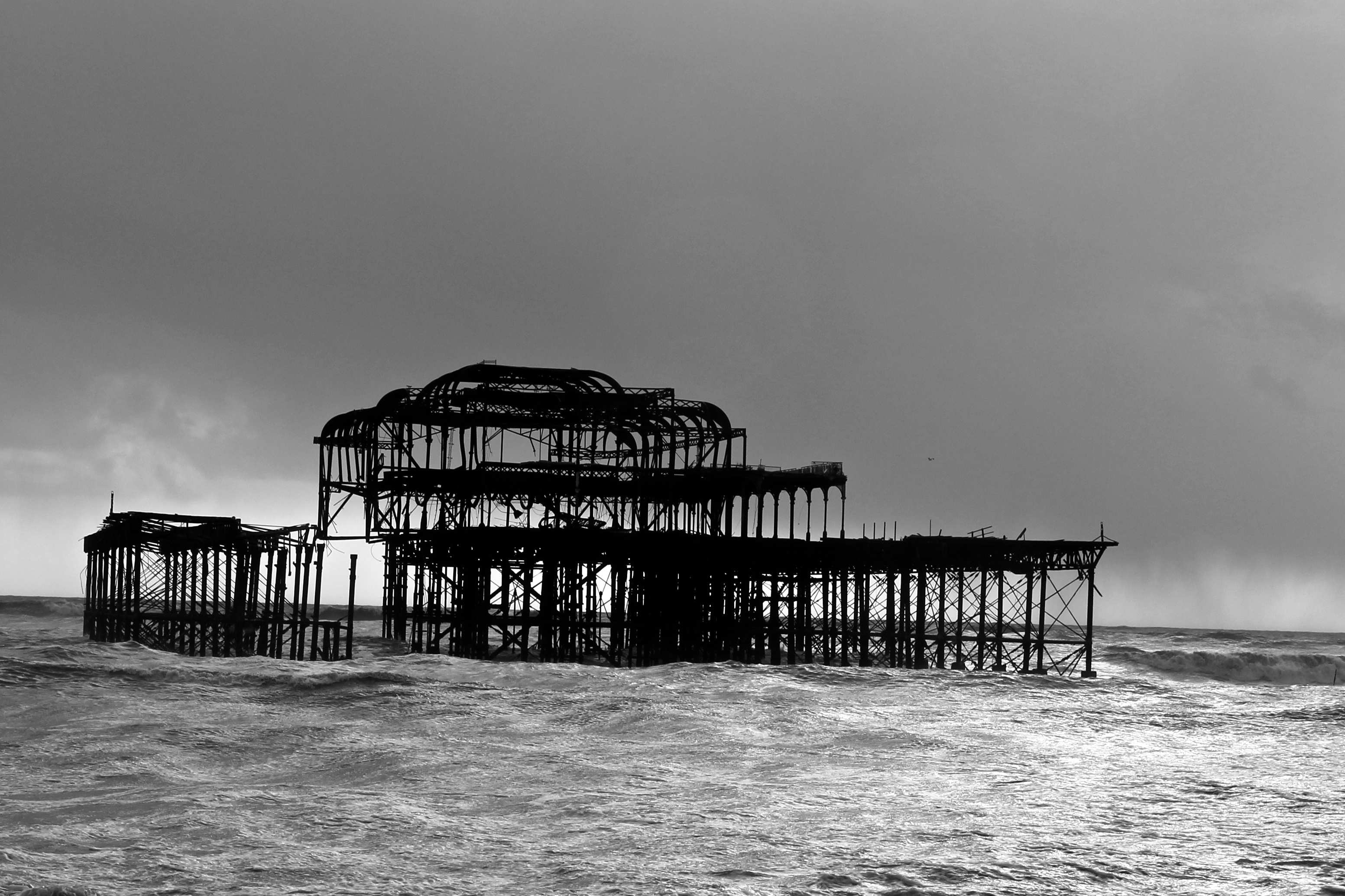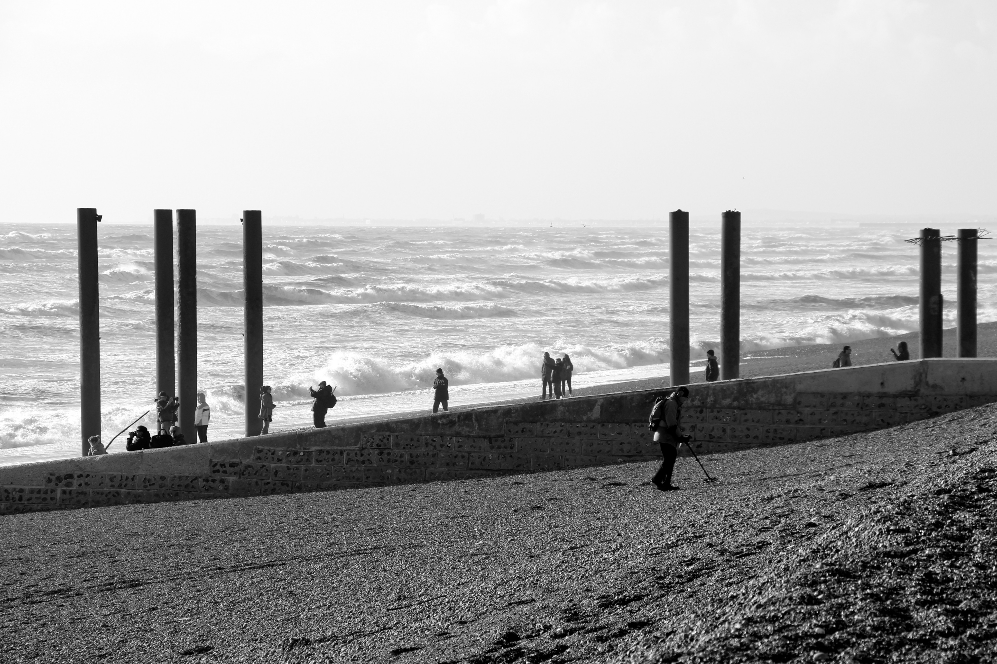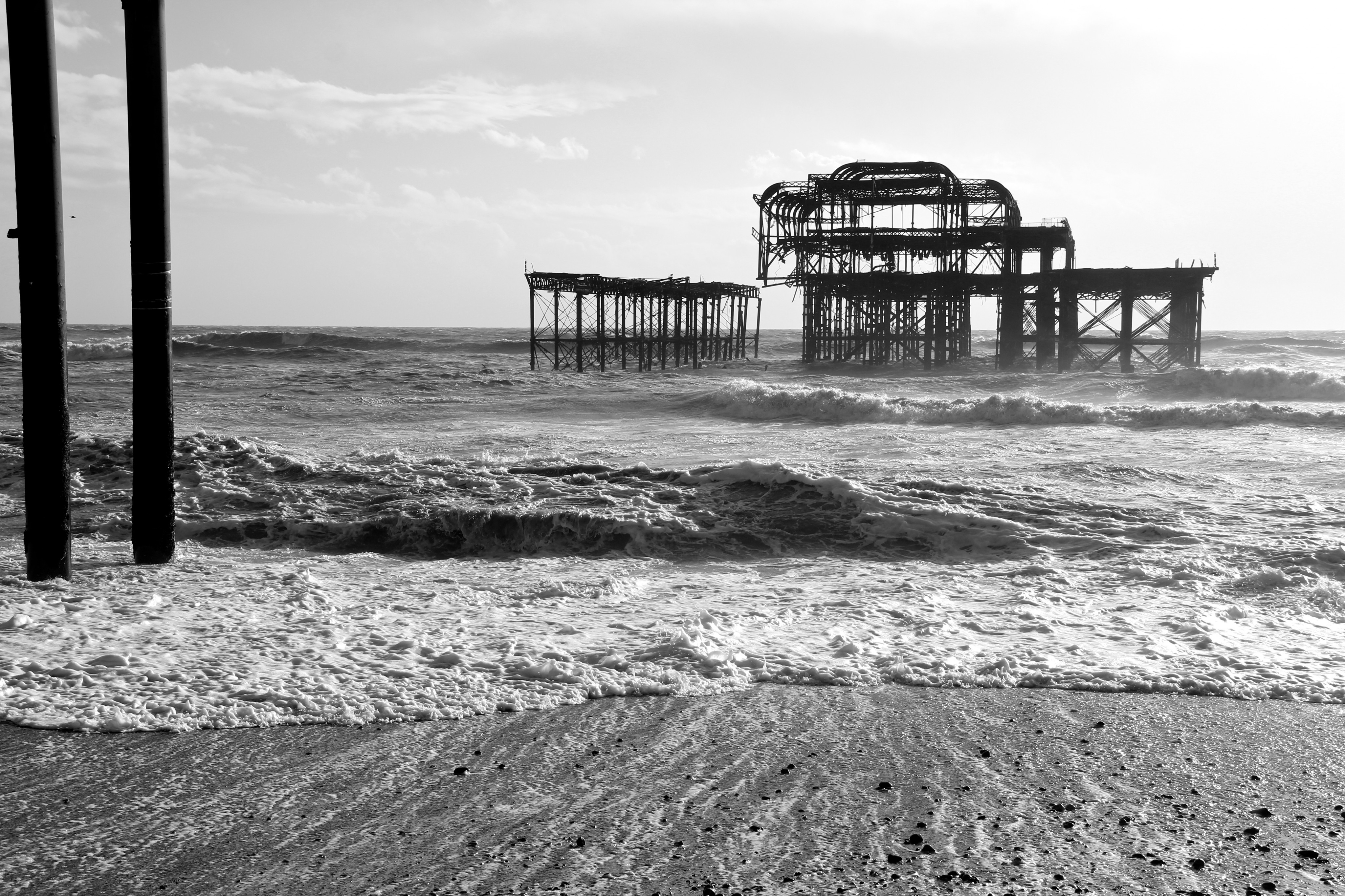 Yesterday (9/02/14) I popped out in the sun/rain to take a look at the damage to Brighton’s West Pier. Despite the weather there were 40 or so people gathered around it looking at the damage, most of them had a camera. Fascinatingly there was a man recording a rap music video and a couple having a barbecue.