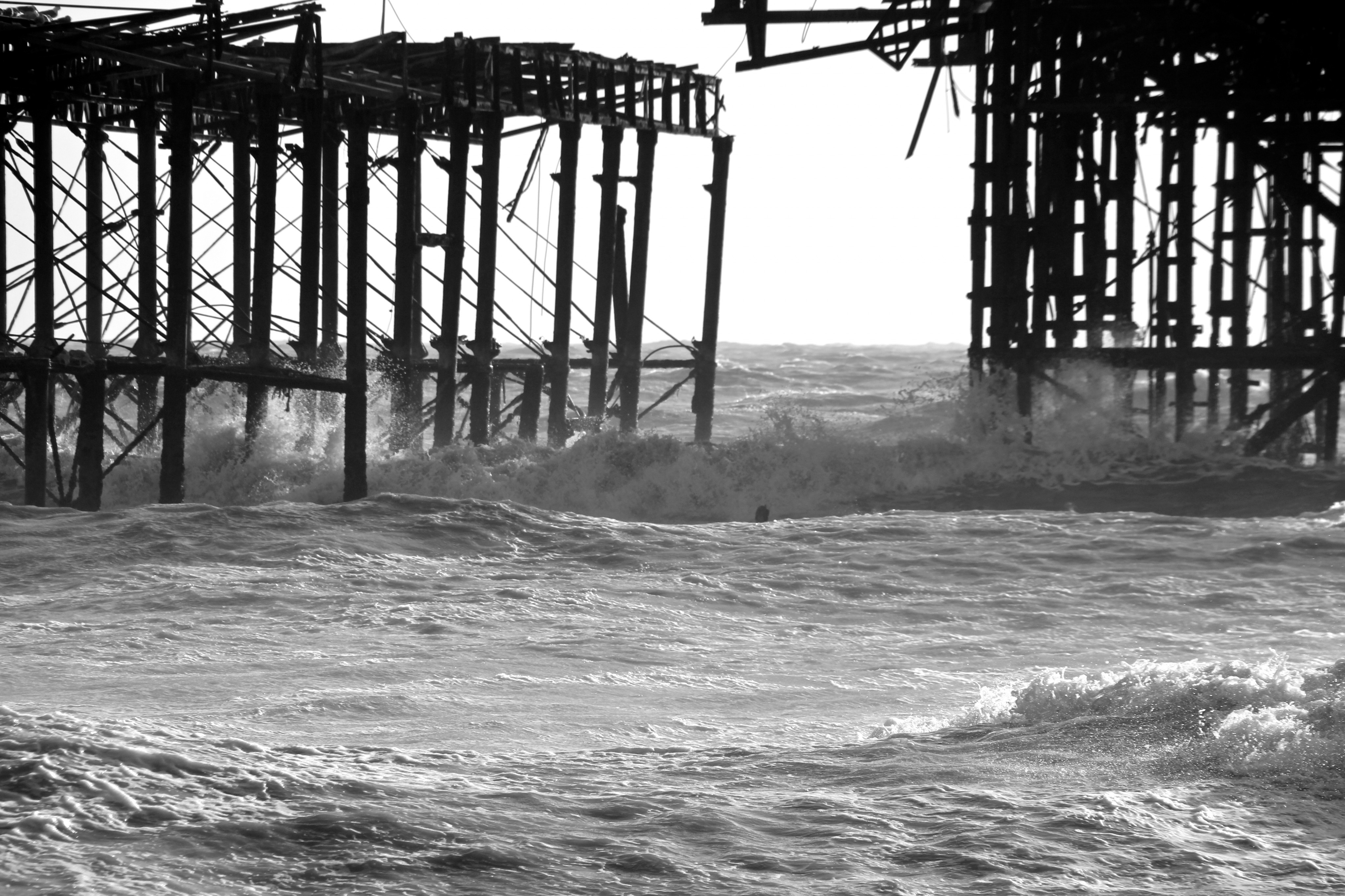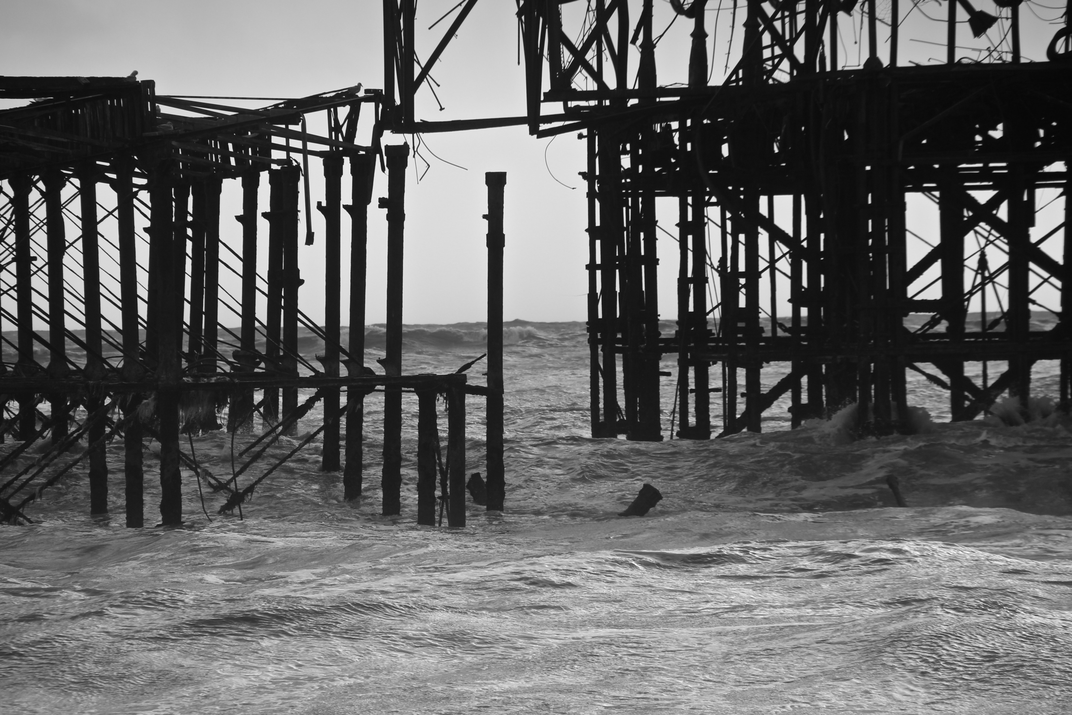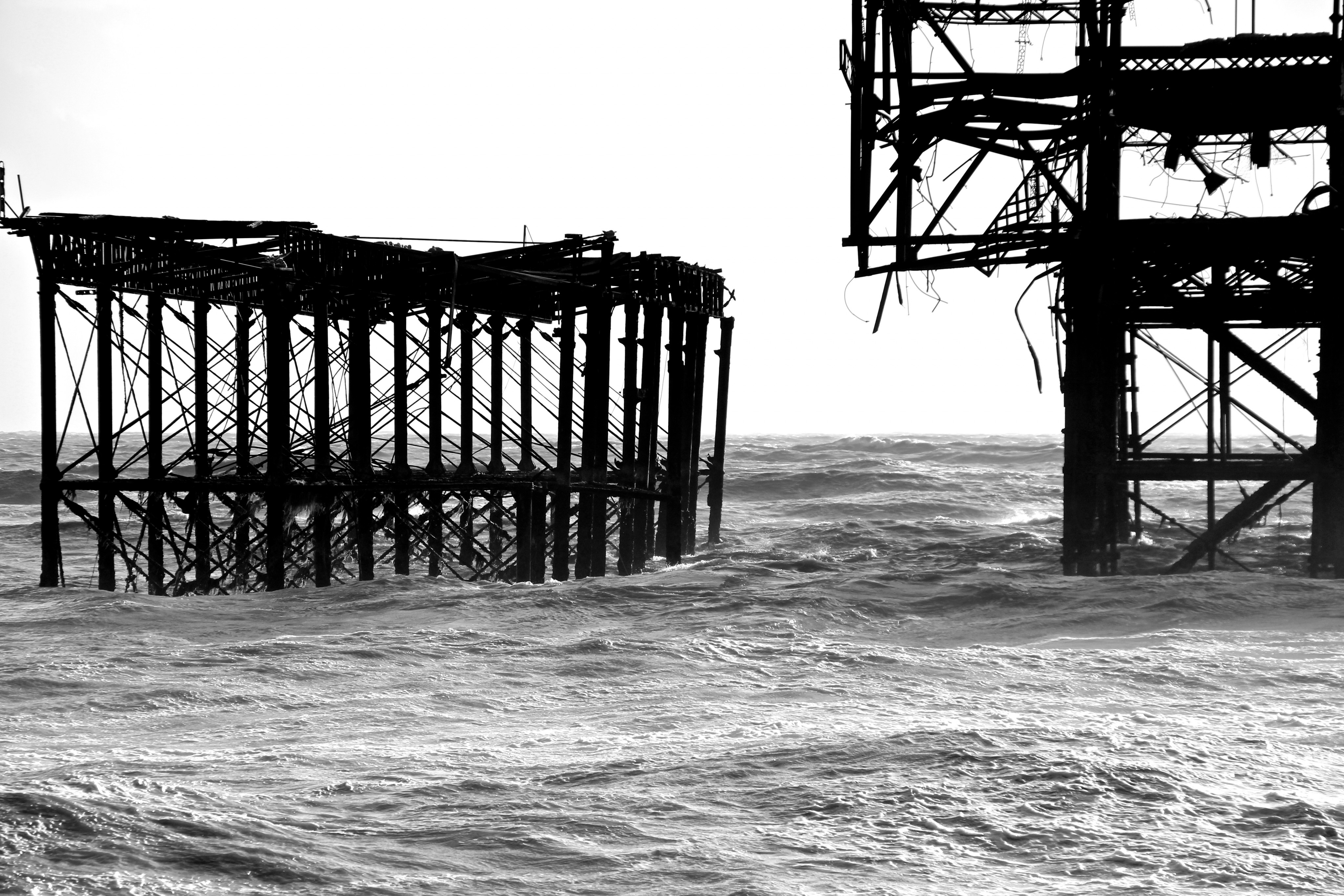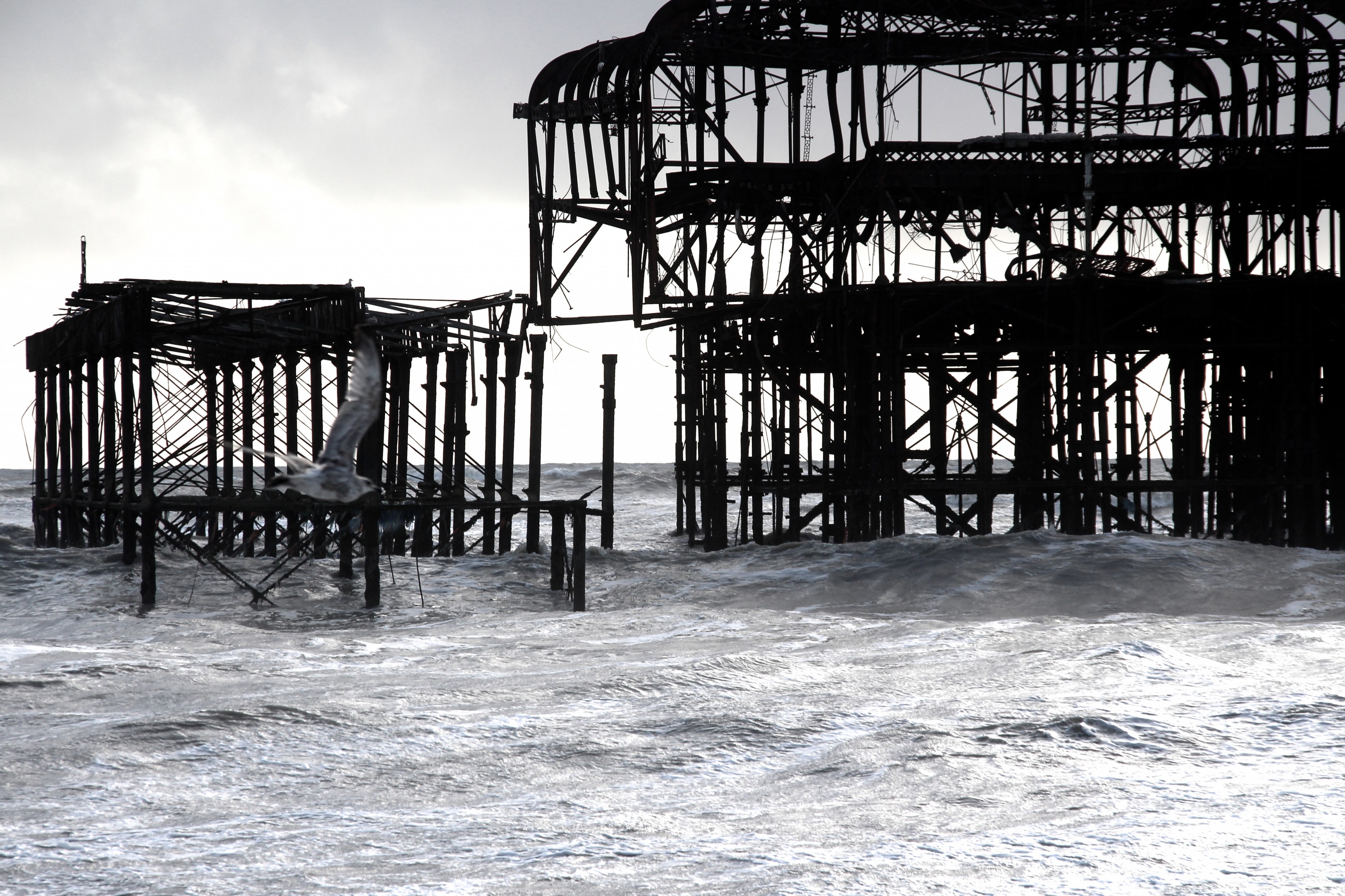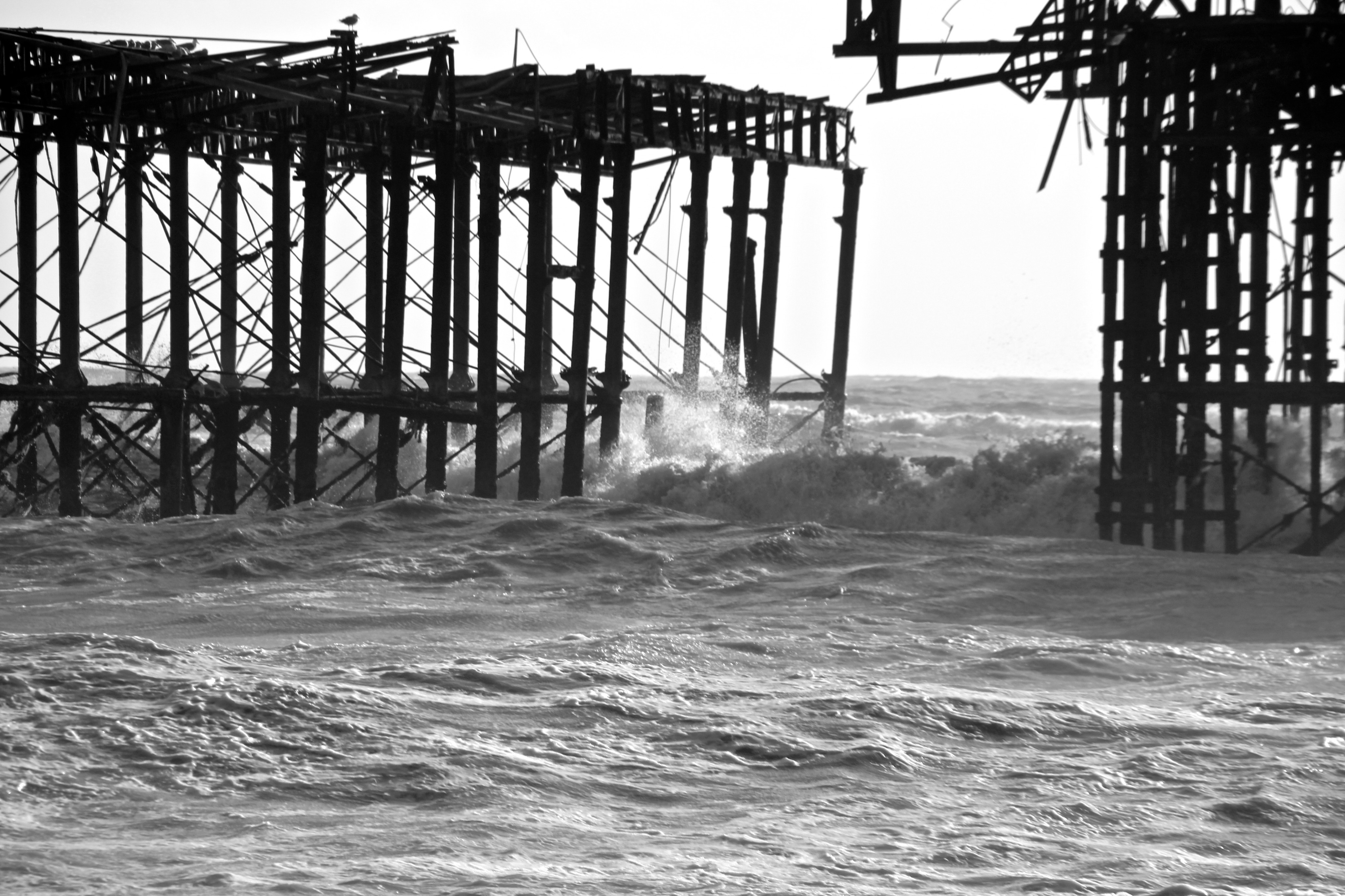 Yesterday (9/02/14) I popped out in the sun/rain to take a look at the damage to Brighton’s West Pier. Despite the weather there were 40 or so people gathered around it looking at the damage, most of them had a camera. Fascinatingly there was a man recording a rap music video and a couple having a barbecue.