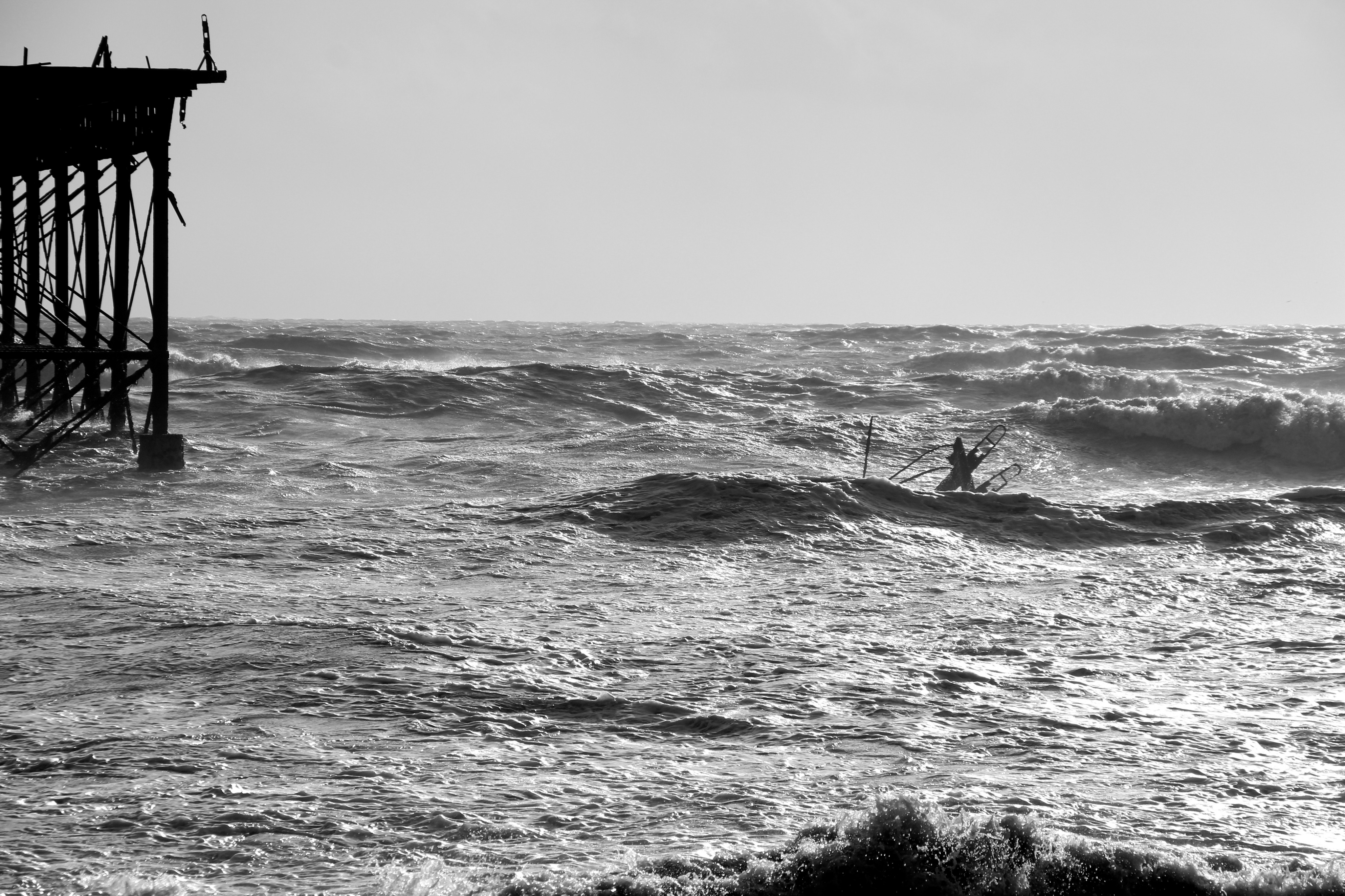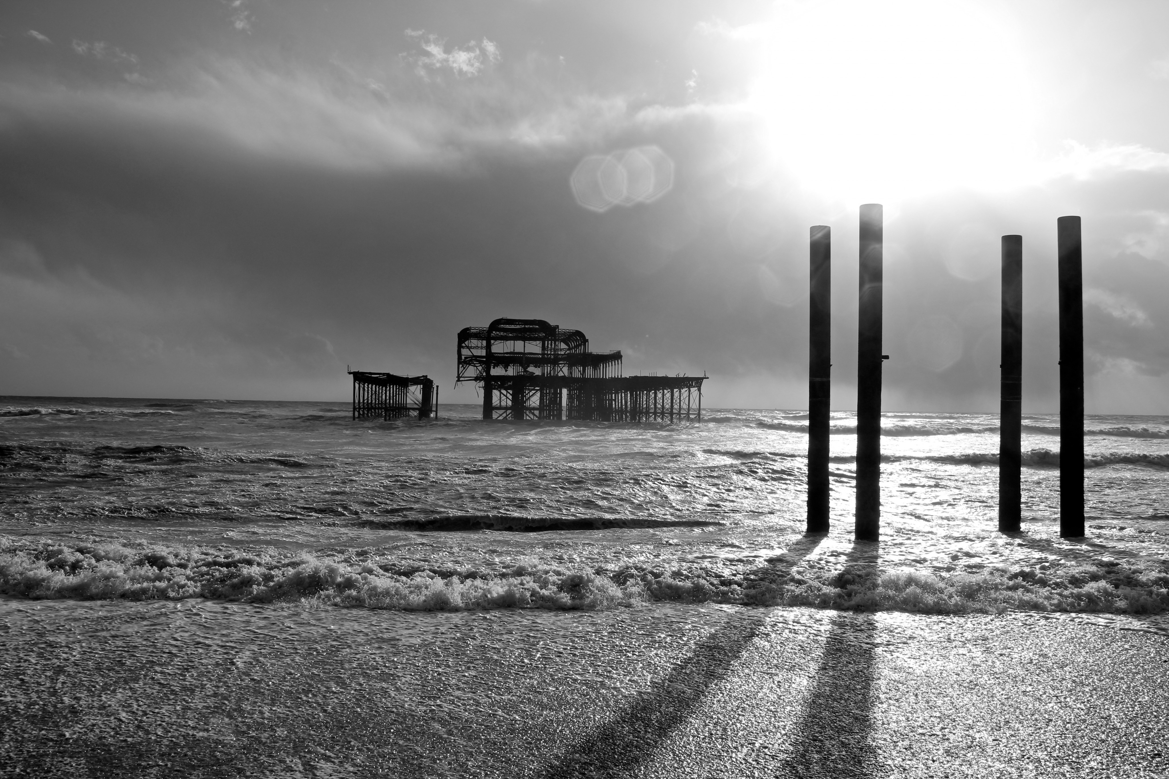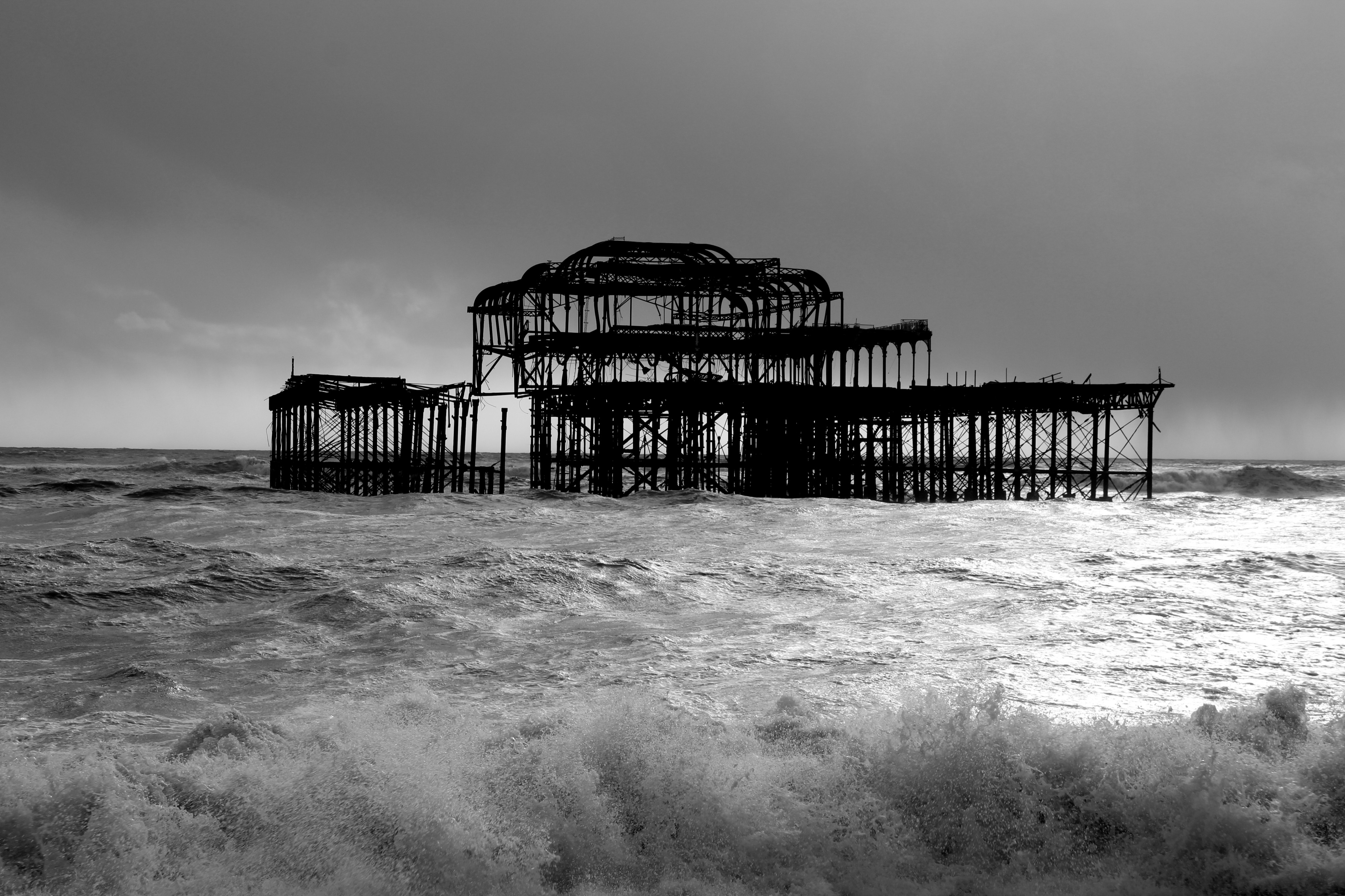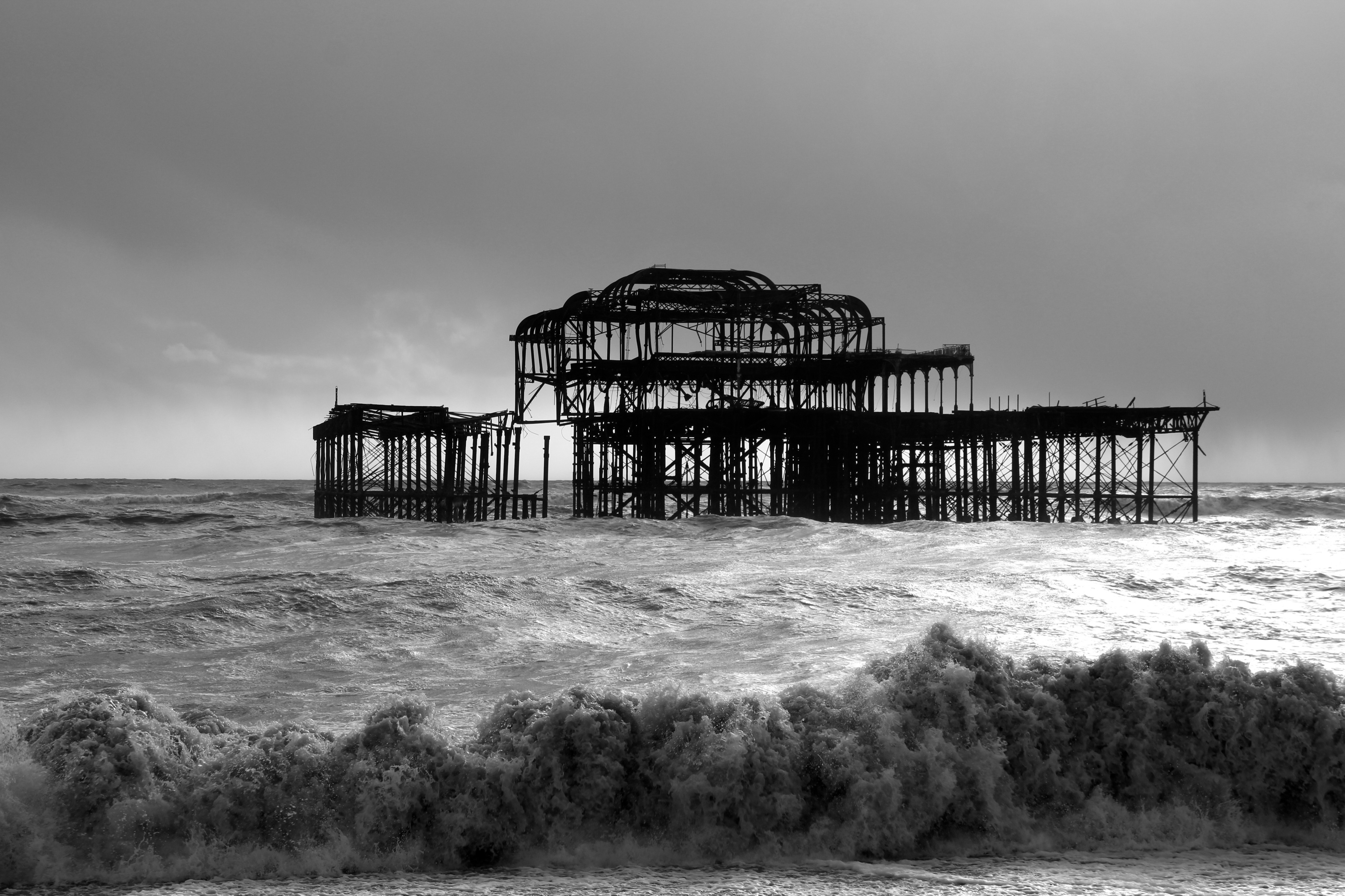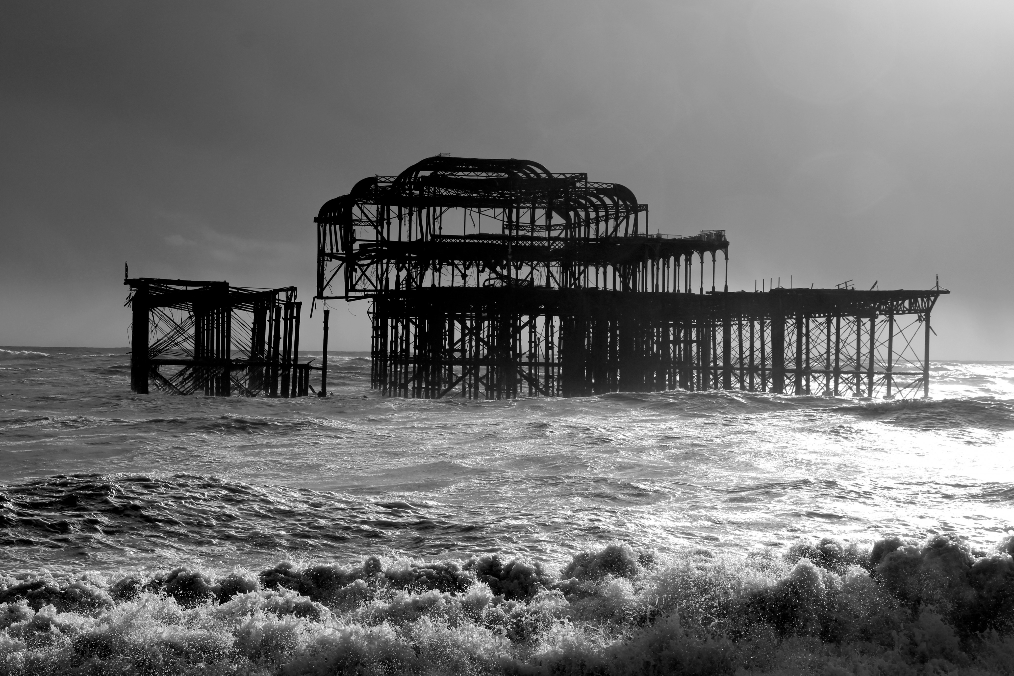 Yesterday (9/02/14) I popped out in the sun/rain to take a look at the damage to Brighton’s West Pier. Despite the weather there were 40 or so people gathered around it looking at the damage, most of them had a camera. Fascinatingly there was a man recording a rap music video and a couple having a barbecue.