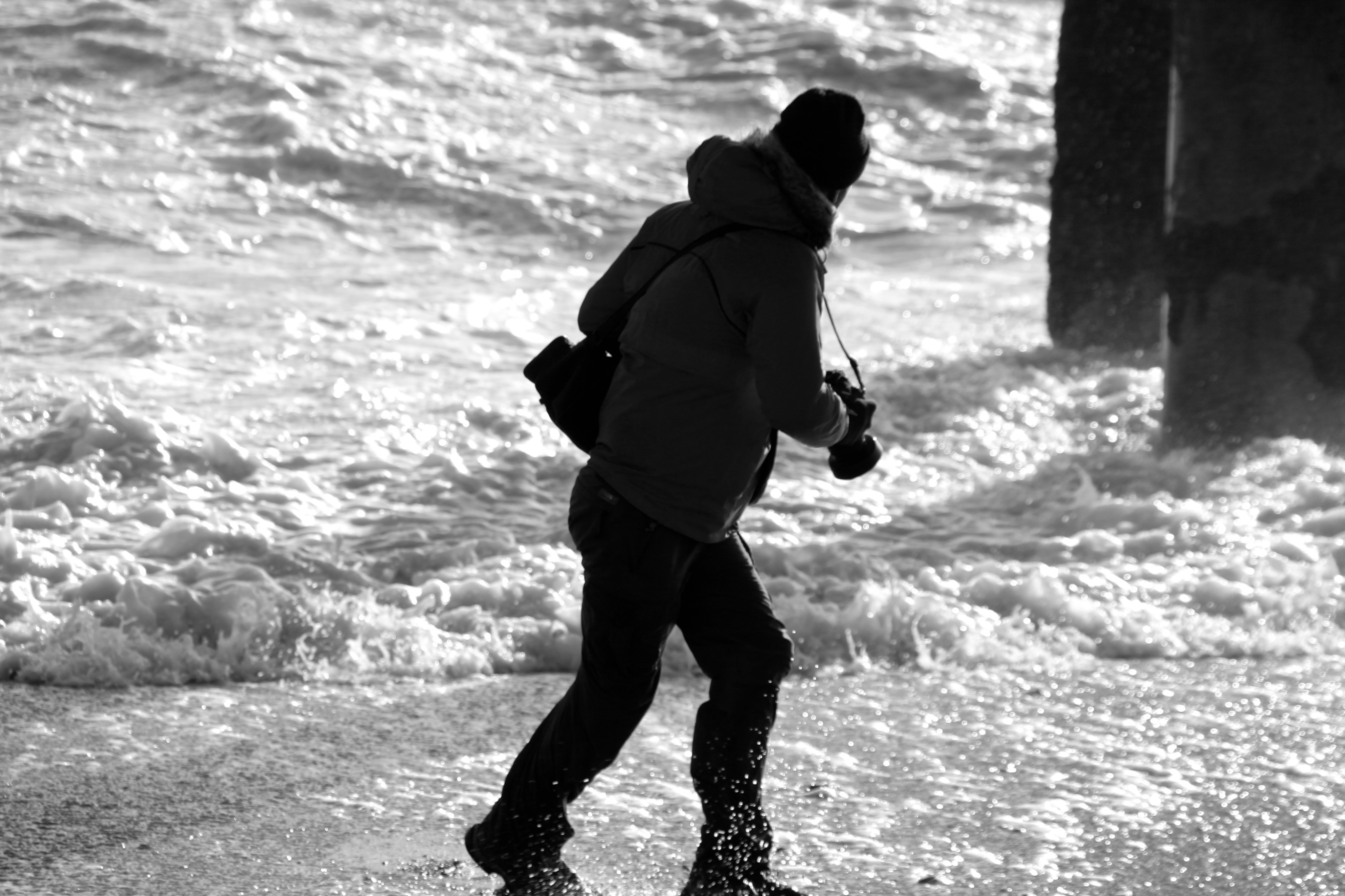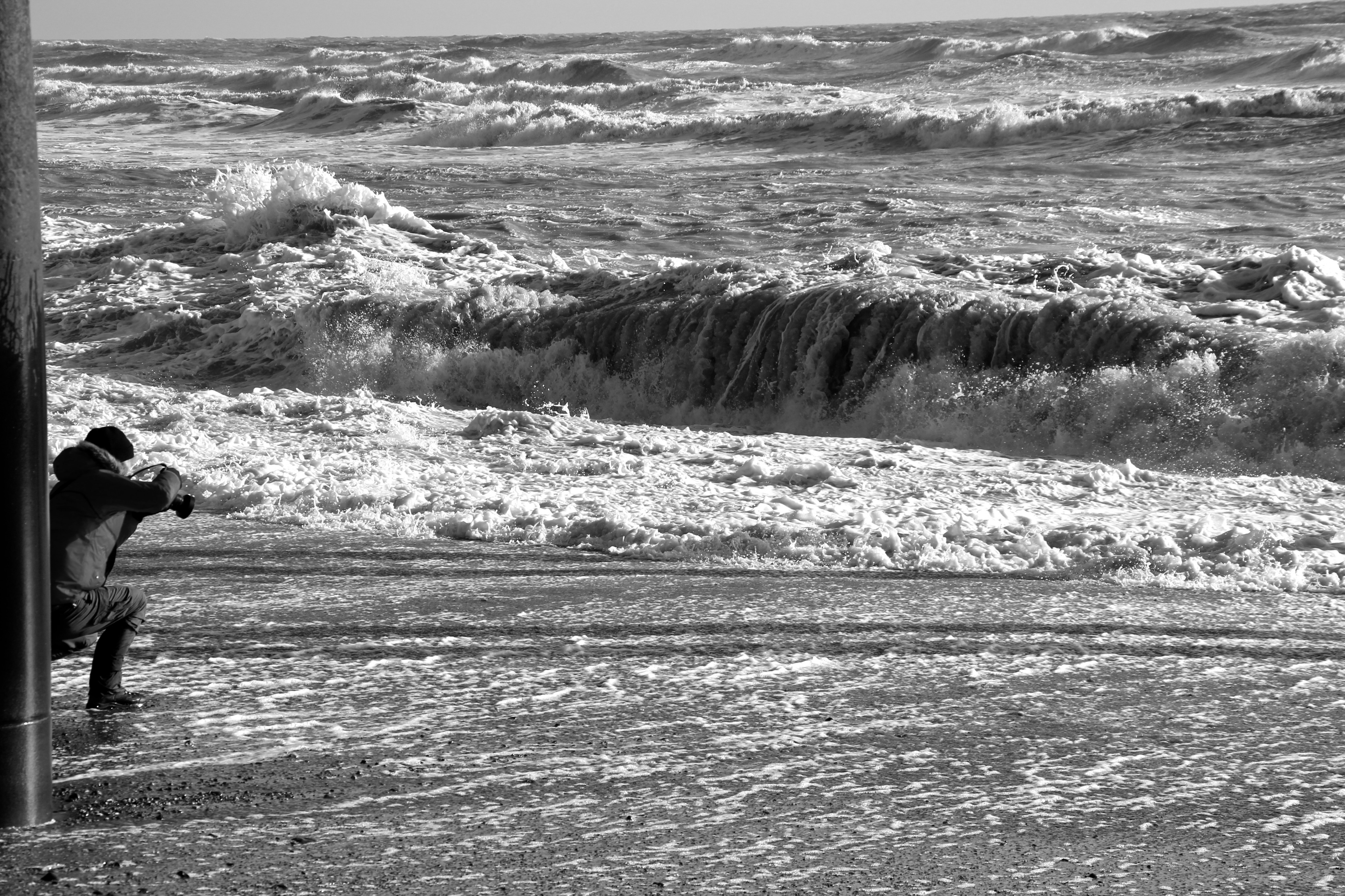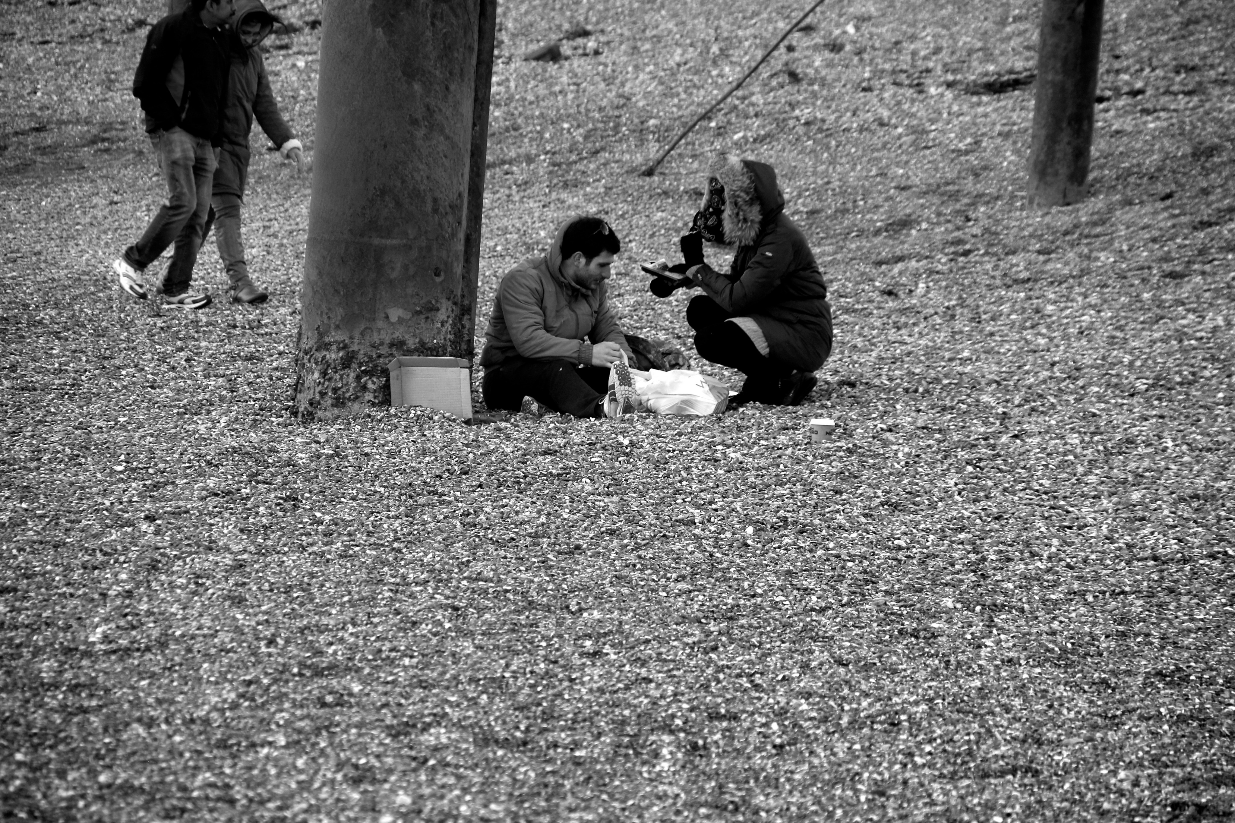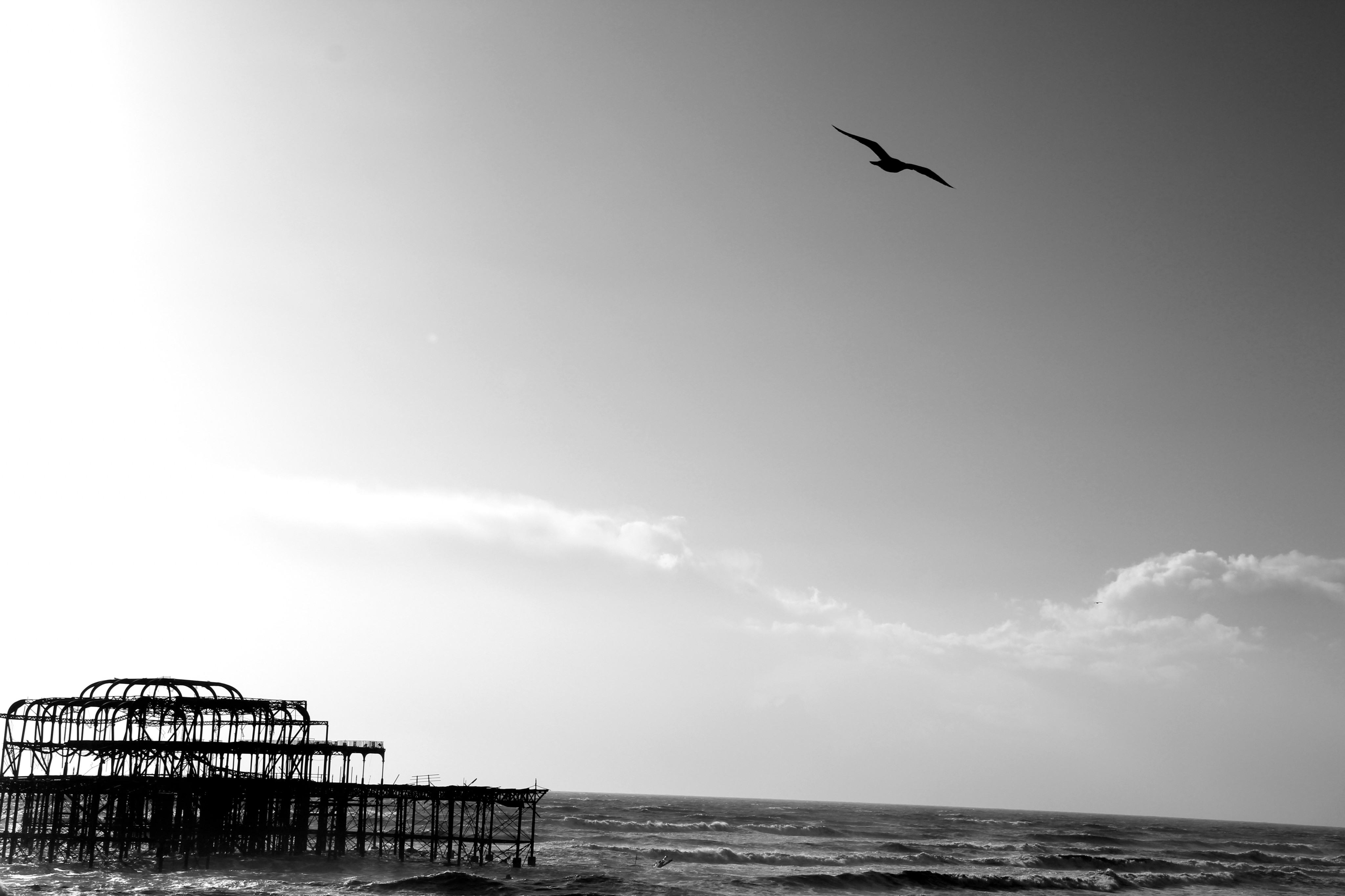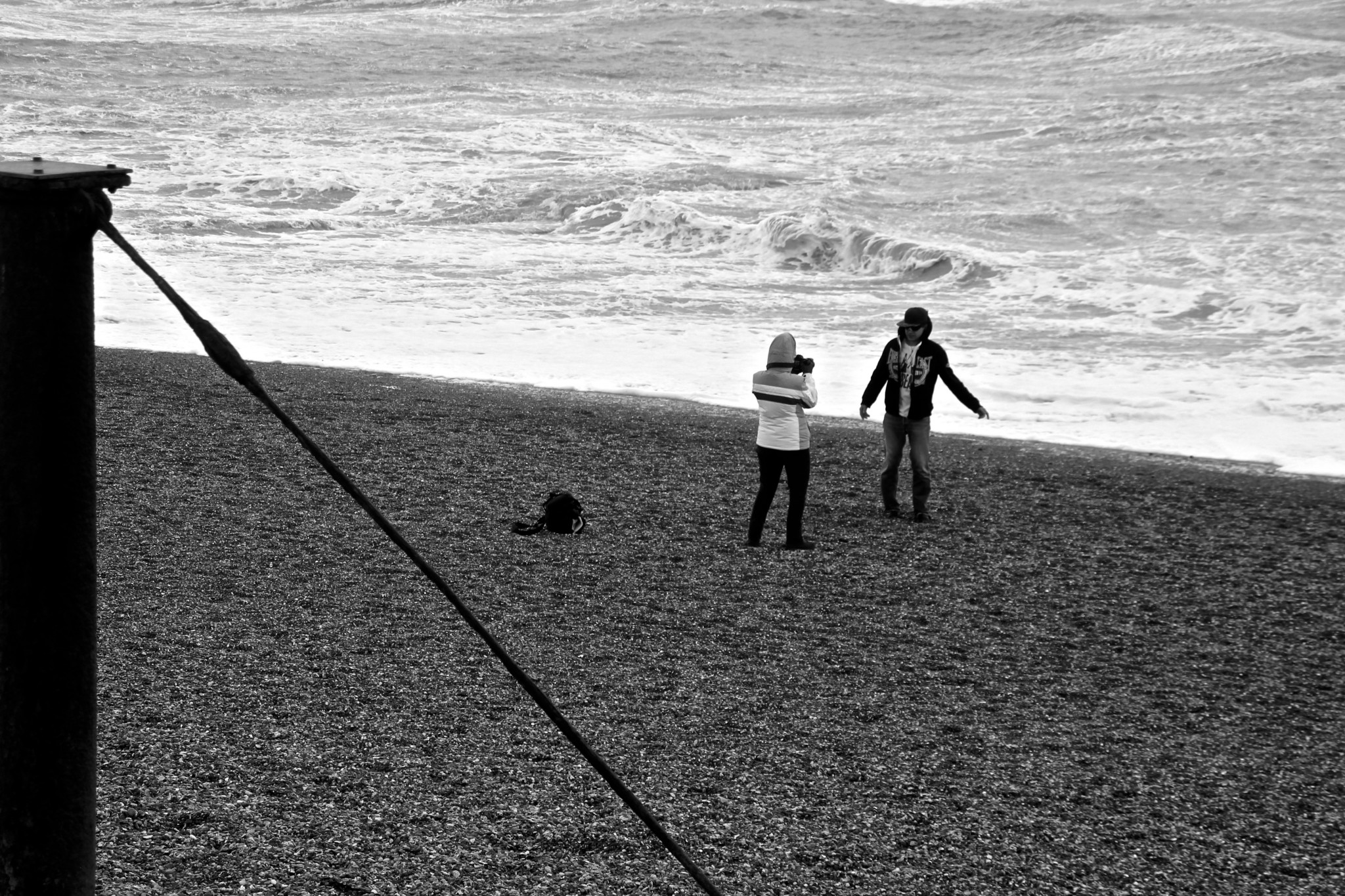 Yesterday (9/02/14) I popped out in the sun/rain to take a look at the damage to Brighton’s West Pier. Despite the weather there were 40 or so people gathered around it looking at the damage, most of them had a camera. Fascinatingly there was a man recording a rap music video and a couple having a barbecue.